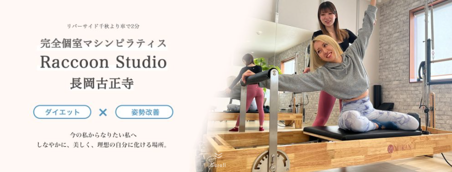 リバーサイド千秋から車で2分、マシンピラティス専門のパーソナルスタジオ「RaccoonStudio(ラクーンスタジオ)