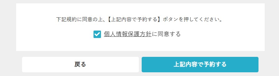 【個人情報保護方針に同意する】にチェックを入れると、予約するボタンが押せるようになります。